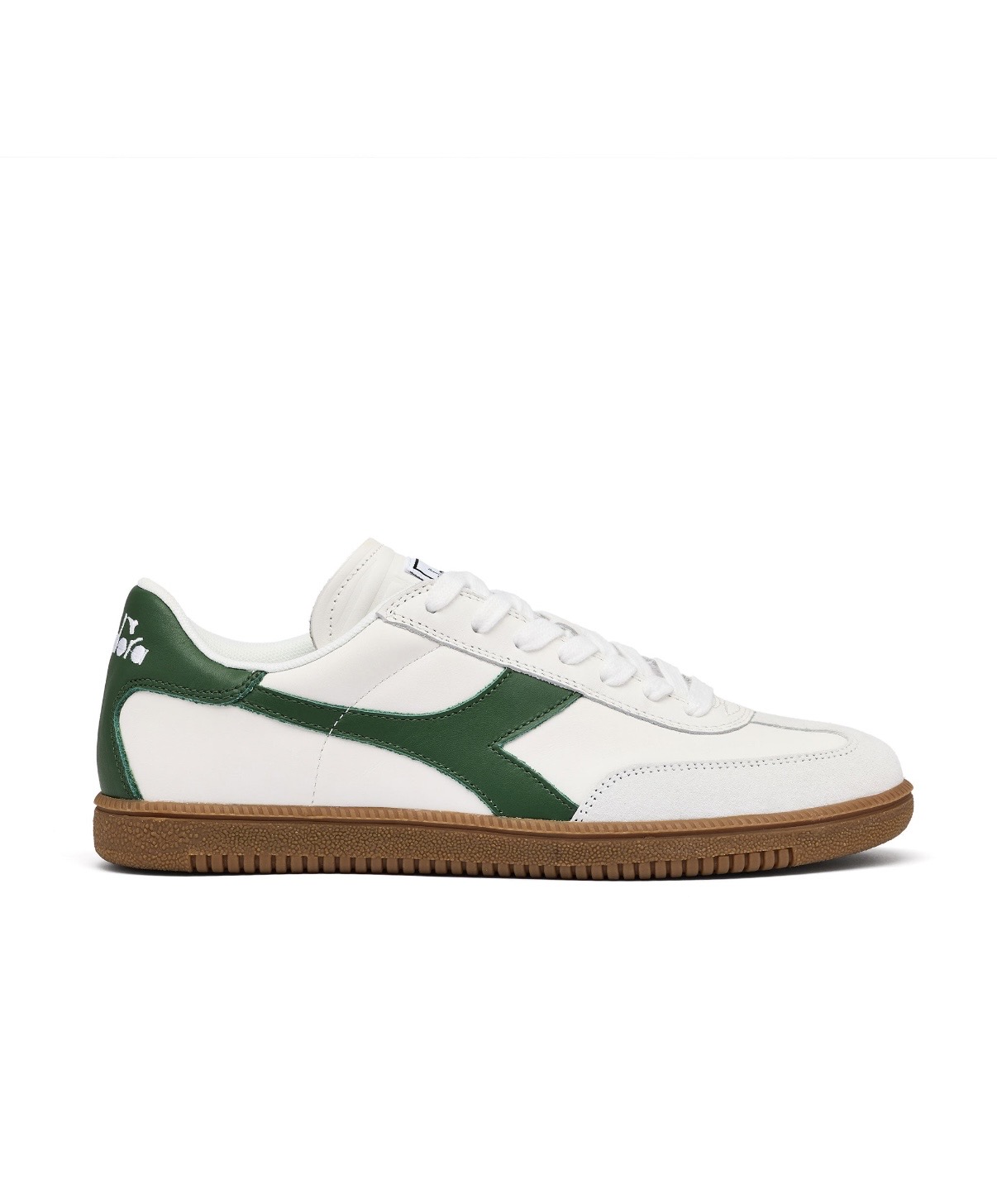 Stijlvolle retro sneakers van Diadora Heritage in een frisse wit-groene kleur. Het model Trainer combineert een klassieke sportlook met moderne comfort. De gum zool en suède details geven de sneaker een authentieke vintage uitstraling.