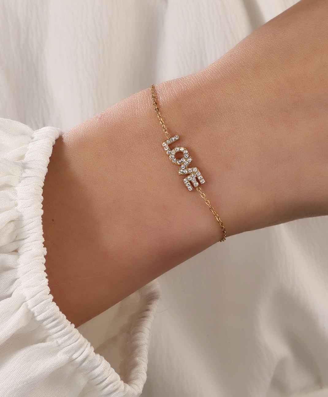 - "LOVE" detail met steentjes