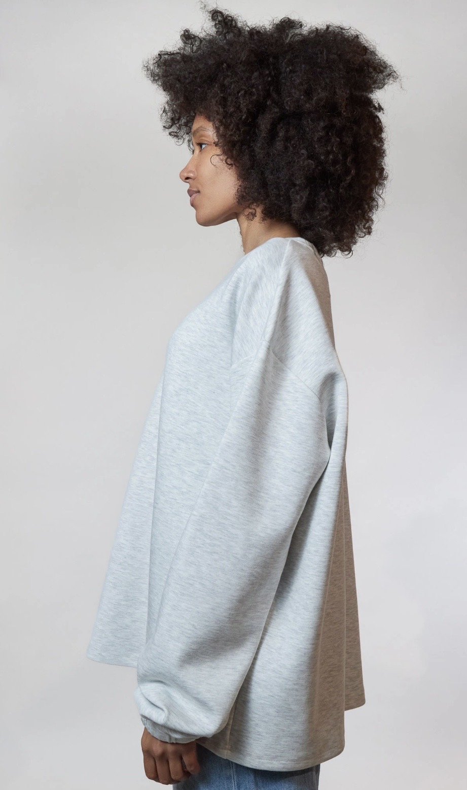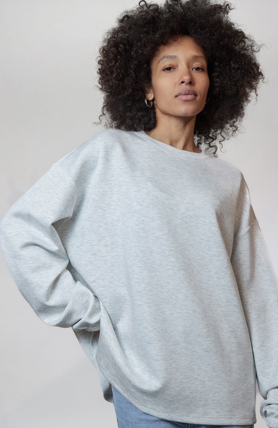 Minimal look, sterke feel. Deze oversized sweater in lichtgrijs is gemaakt van neoprene, wat zorgt voor een mooie, gestructureerde fit die altijd goed blijft zitten.